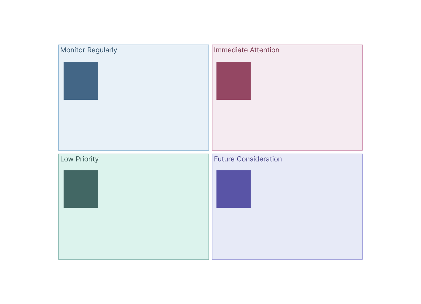 Edit the matrix by adjusting shapes, labels, or groupings. You can add or remove items, drag-and-drop cards into new sections, customize quadrant labels, and apply your team’s visual conventions like color coding.